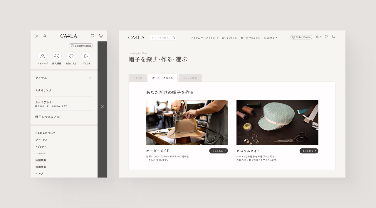 『すべてのひとに、最高の帽子を』をコンセプトにファッションとして発展した日本独自の帽子文化を世界へと発信するCA4LA(カシラ)のオフィシャルECサイトをリニューアルしました。 PANORAMAでは、“店舗同様に多くの方から選ばれる帽子ブランド”のECサイトを目指し、UI設計・デザイン・実装のweb制作一式から、撮影やイラストなどの素材制作、メルマガ制作などを担当させていただきました。