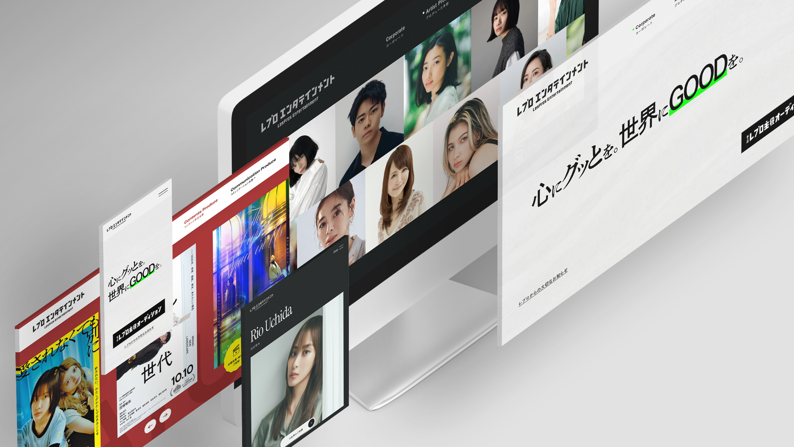 アーティストマネジメントやコンテンツ制作など、『総合エンタメ事業』を展開する株式会社レプロエンタテインメント様のコーポレートサイトリニューアルを行いました。 マネジメント領域に留まらない、各事業部の色が立った総合エンタメ事業会社であることをWebサイトからも視覚的にも感じ取っていただけるよう、コーポレートサイト↔︎各事業部サイトのトンマナを明確に分けて表現。 企業としての色・事業部としての色をお伝えしながら、3事業部から成り立つ強みのある企業であることも理解していただきやすいサイト構成としております。